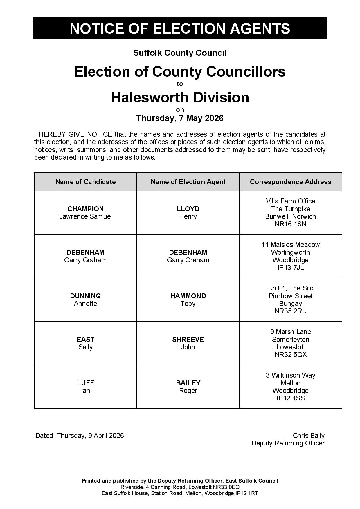 Declaration of Result of Poll Suffolk Coastal Constituency